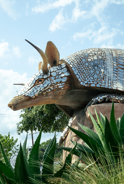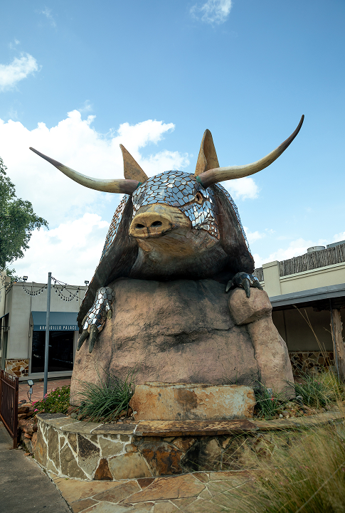 When I first dreamt up this idea, there was really only one object that I considered starting with and, ironically enough it’s not hanging on a wall. If you drive down Kirby past Goode Company Barbeque, look out your right- or left-hand window and you’ll see the object that has attracted the attention of countless Houstonians and visitors, been the backdrop for plenty of proposals, and even made its way onto Mick Jagger’s social feed. I’m talking, of course, about the armadillo guarding the front of The Armadillo Palace. It’s a striking landmark in the area, and has a pretty striking backstory as well.